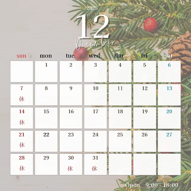 なお、年末年始の休業日は2025年12月30日~2026年1月6日までとさせていただきます。