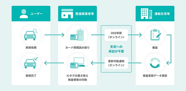 国交省は運輸支局等への出頭不要を実現する為、電子車検証への記録や検査標章の印刷などの事務を整備事業者が行える「記録等事務委託制度」を創設、指定整備工場では「記録事務代行」が開始されました。