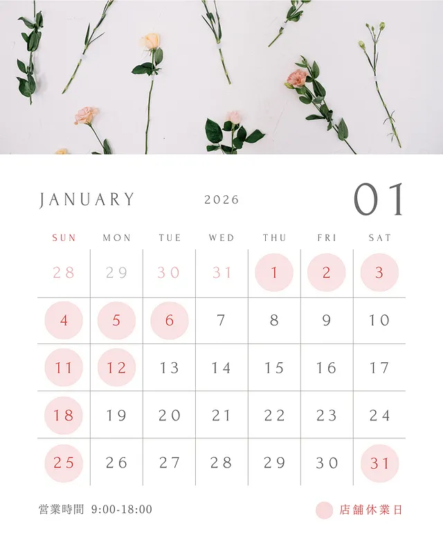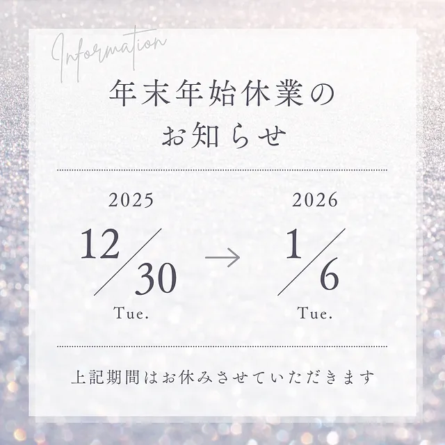 なお、年末年始の休業日は2025年12月30日~2026年1月6日までとさせていただきます。